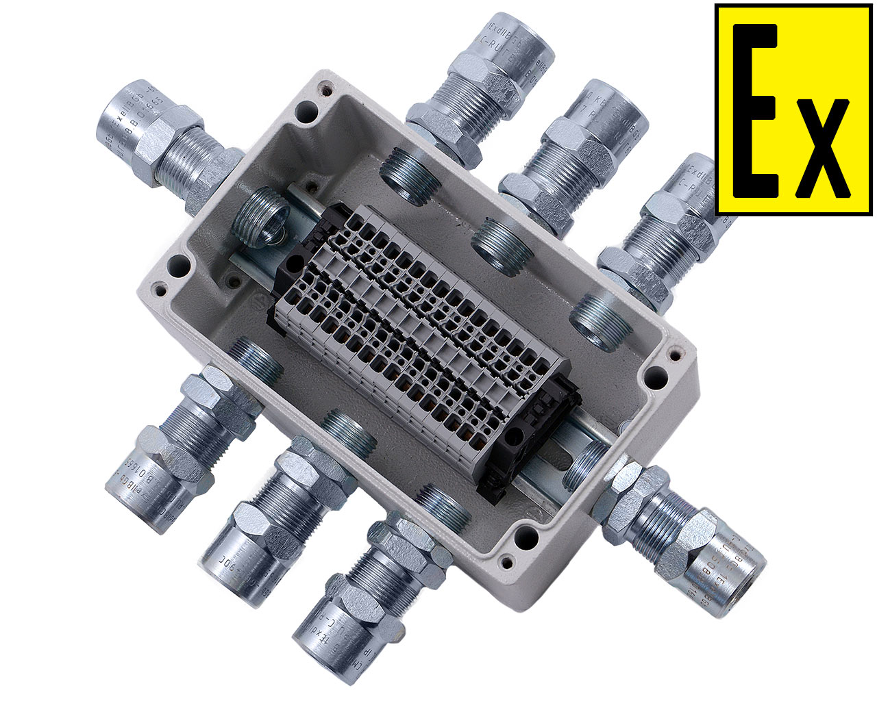 The customer chooses the number of terminals, cable glands and their type. The manufacturer reserves the right to dispose of all elements according to his project.