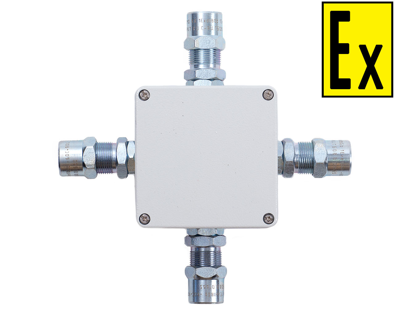 The boxes are supplied with explosion-proof cable entries of the KV series TU 3449-138-81888935-2016 produced by OOO & la company SMD. The type, number and location of the cable glands is specified when ordering. Each cable entry is supplied with rubber seals for the cable.