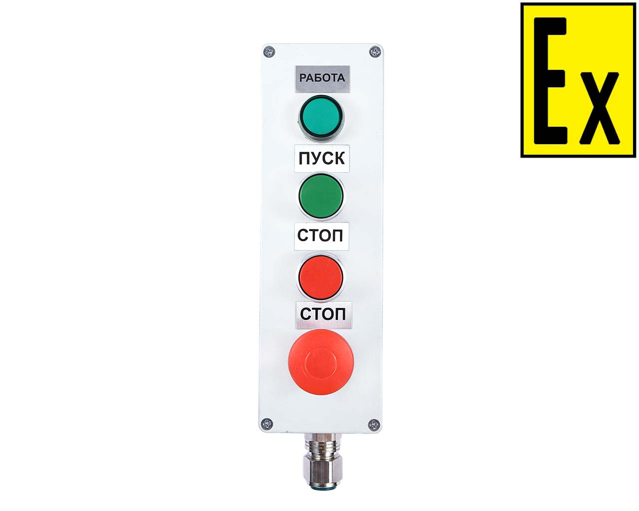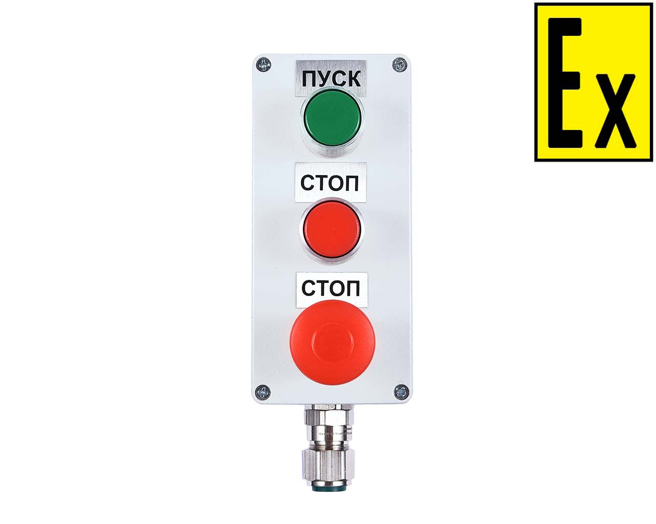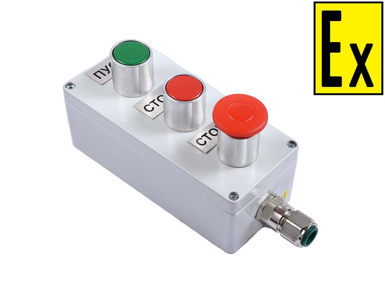 The posts are intended for switching, controlling and indicating the operation modes of AC and DC electric circuits in the explosion hazardous areas. The posts are designed to connect armored and non-armored electrical cables of circular cross-section, as well as cables in metal hose or pipe.