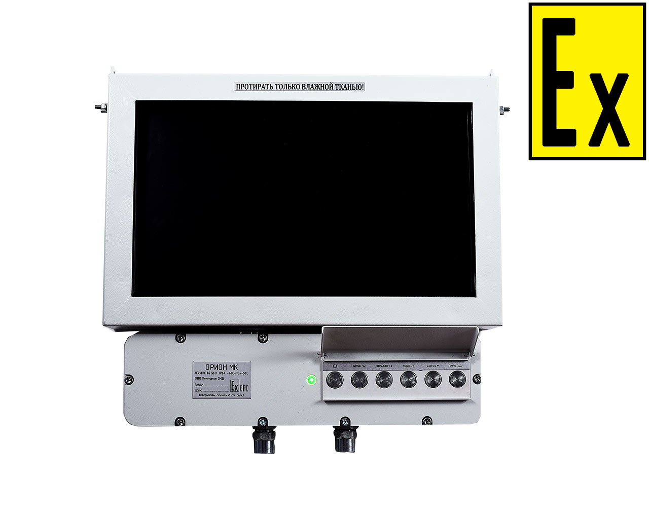 The explosion-proof monitor has an explosion-proof type “explosion proof enclosure “ d ”. Explosion protection marking PB Ex d I Mb X / 1Ex d IIС T6 Gb X according to GOST R IEC 60079-0-2011. The sign "X" in the marking means not to expose the light-transmitting part to mechanical stress..