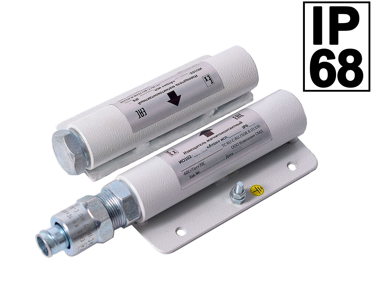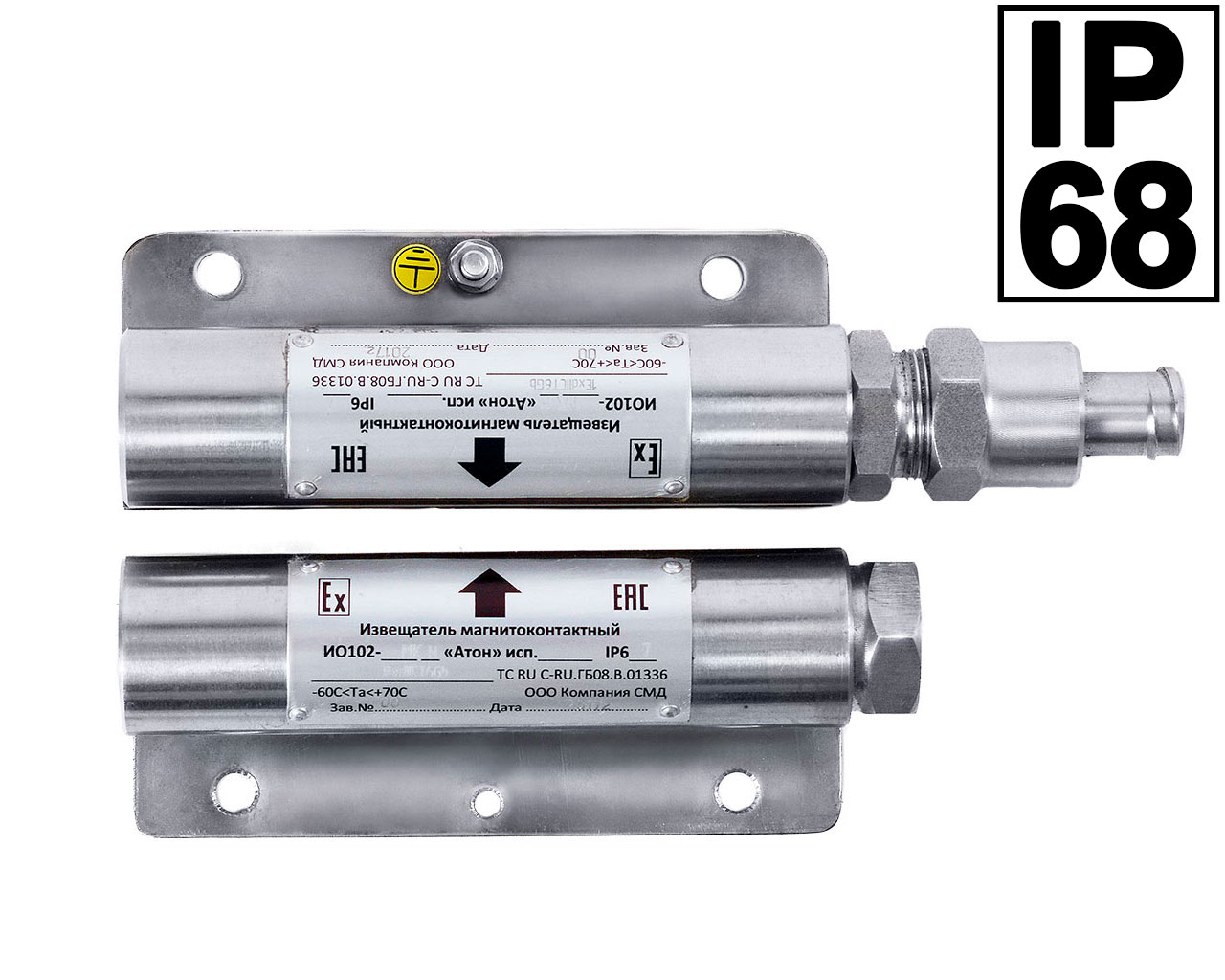 | IO102-Н Aton ver.11 | Cable KPKVng-FRLS-2x2x1.0mm2 in metal hose RZ-TsH-12, 1 m; N/o contact | Stainless steel 12Х18Н10Т |